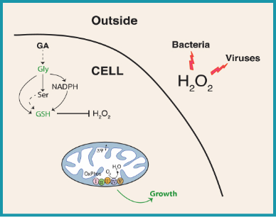 ამ აღმოჩენის საფუძველზე შექმნილ GlyPerA™-ს ანტიმიკრობული ხსნარი უჯრედის გარეთ ეფექტურად ანადგურებს ვირუსებს და ბაქტერიებს, გლიცინი კი უჯრედის შიგნით აჩერებს ჟანგვით სტრესს და იცავს მიტოქონდრიას.